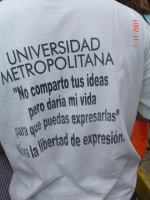 Readers – please note that although the vast majority of the Venezuelan population is of mixed race (mestizo in Spanish) one can observe that almost all the students are from European white stock, who are a minority in the country but form the largest section of the privileged middle classes.