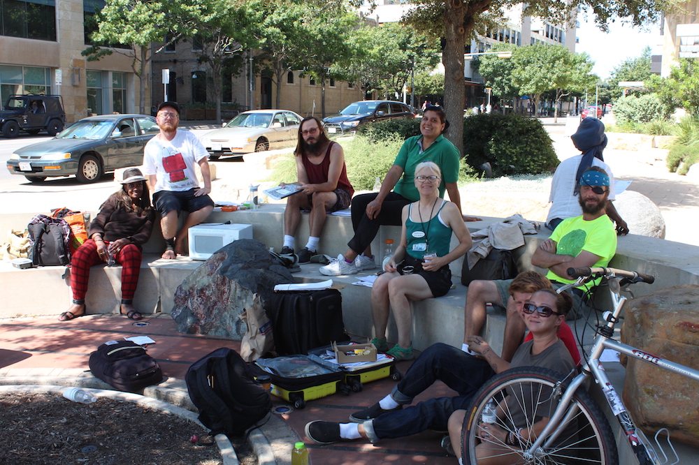 But this oak tree isn’t just a great vantage point to watch Austin and its citizens, it also provides something else: Every Sunday afternoon it becomes a meeting place for people publishing a special newspaper — one produced by Austin’s homeless population.