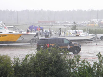 “They had evacuated this site,” she writes. “Same setup though, a guard and a Sheriff’s car. We then went to a site in Gulfport. Evidently, this is a main BP storage site. There were all kinds of boats, including the tank skiffs. The Sheriffs Department was there also and so was those large, plastic tanks with the yellow bases.”
