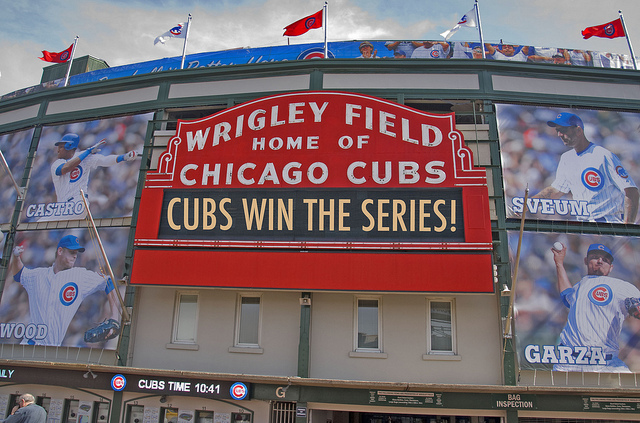 Cubs win! This image from 2012 was a photoshopped fantasy. Last night’s victory was not photoshopped! Image by Ron Cogswell / Flickr.