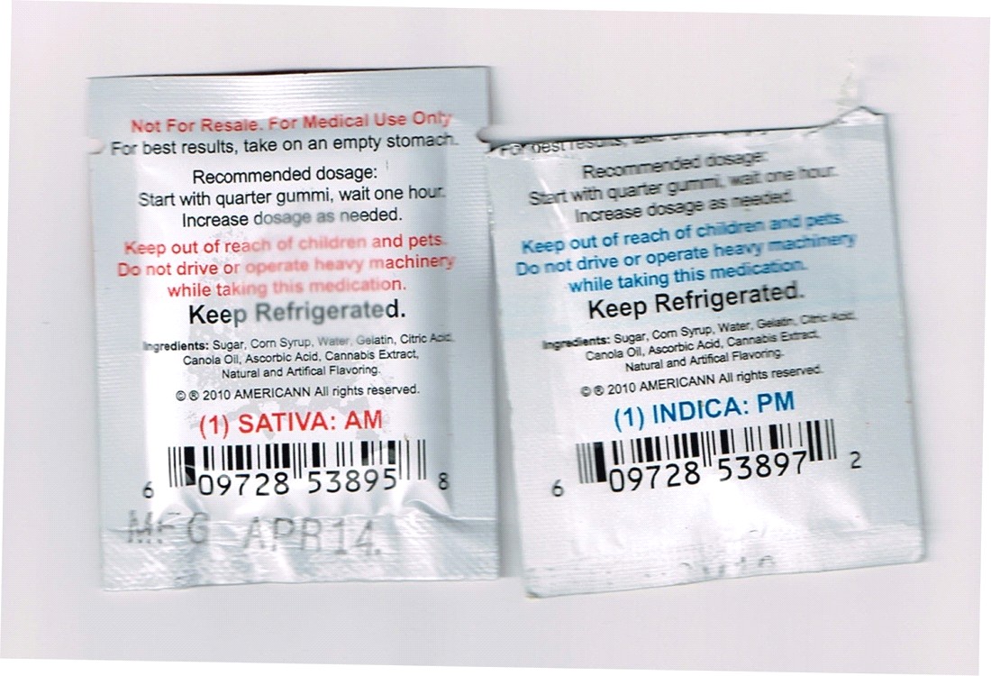 Back of Gummi Cares packets. Packaging would have to meet other requirements if products were regulated as dietary supplements. This particular product seems to be consistently and ethically produced – but who can know?