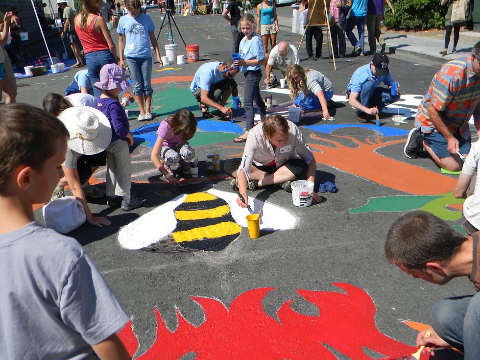 SEBASTOPOL, California — Participants in the ambitious 10-day First Annual Sebastopol Village Building Convergence (VBC) painted murals on streets in this small Northern California town and filled the Grange Hall, the Permaculture Skills Center, and other sites from September 12-21.
