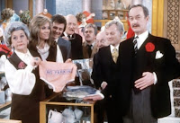 Wendy Richards (long a mainstay of the enormously popular soap opera Eastenders) was cute but dim cockney saleslady Miss Shirley Brahms. Nicholas Smith (with young Mike Berry, one of the only two cast members still alive today) was incompetent, jug-eared Mr. Cuthbert Rumbold, who was autocratic to some, obsequious to his boss, and who had a long series of foxy but stupid secretaries.