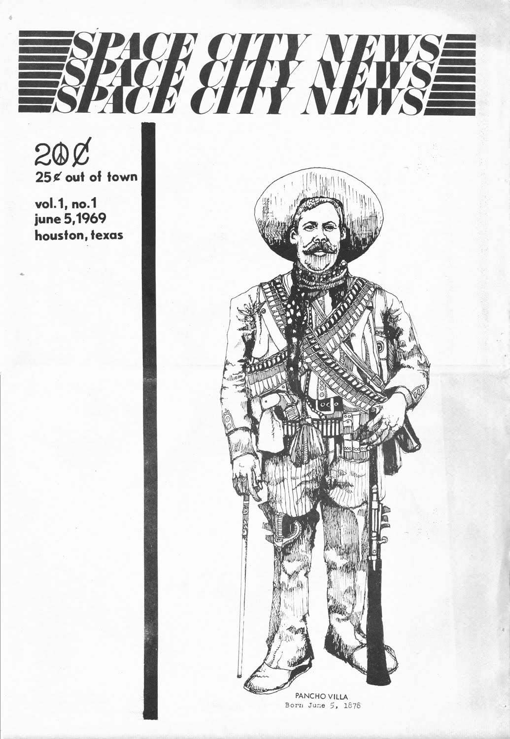 In 1969, Space City News, a newly minted underground newspaper, hit the streets and newsstands of Houston, Texas. The cover featured Pancho Villa who shared the same birthday with the paper, June 5.