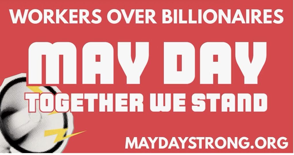 On May 1st, we celebrate the original Labor Day, International Workers Day, that commemorates the May 1, 1886, General Strike in the United States for an eight-hour day. May Day is a day to celebrate the proud history of the international labor movement and the brave people worldwide who have dedicated and sacrificed their lives to create a better world. May Day 2026 will demonstrate the power of collective action and solidarity. Join your fellow workers, classmates, and neighbors to rally and march.