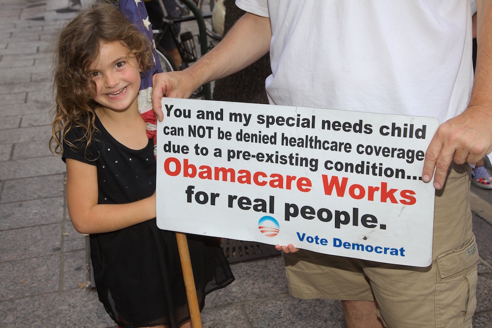 Another participant in the protest shared her heartfelt letter to Senator Cornyn. Rachel Lance spoke of her four-year-old daughter, born with Amniotic Band Syndrome, a preexisting condition from injuries en utero. Her family depends on the ACA protections to provide medical care that allows her daughter to breathe, speak, hear, and walk. Her daughter, blind in one eye, has accumulated between $100,000 and $250,000 of medical expenses every year of her life. Her letter to Cornyn said,