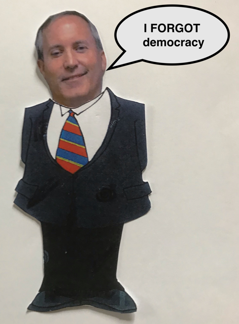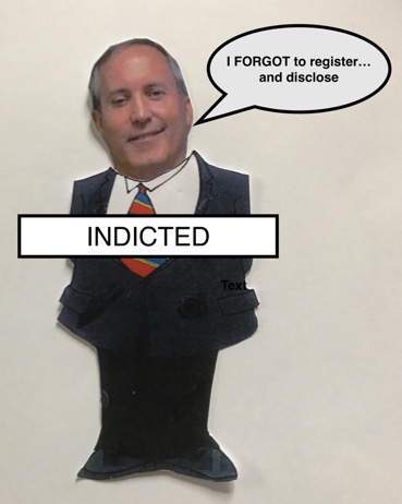Alice, this is hilarious. And informative – I did not know about the $1000 pen incident! And it happened in Collin County – probably at the courthouse – in the state senate district of his wife, Angela Paxton (R-McKinney) who is now MY Senator. If she doesn’t recuse herself from the trial in the Senate, some of her constituents plan a call-in campaign— though we don’t have a catchy name for it.
