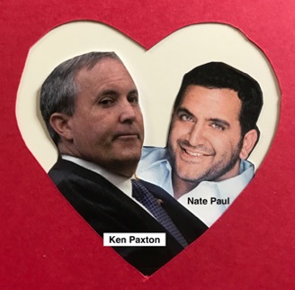 The Affair: Texas AG Ken Paxton forgot he was married to Texas Senator Angela Paxton. Not to worry, he recommended the woman with whom he was having an affair for a job with a wealthy donor, Nate Paul, conveniently transferring her from her job with the Texas Senate.