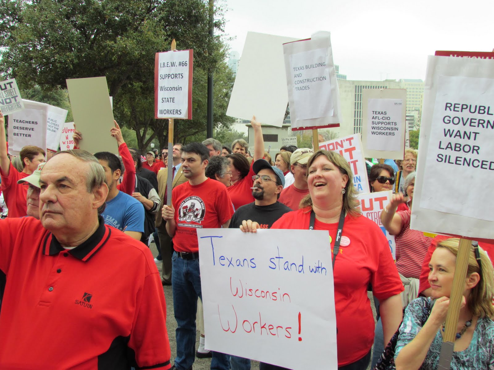 This was the second mobilization by Austin union supporters in one week. A demonstration organized by the AFL-CIO attracted hundreds to the south steps of the Capitol on Monday night.