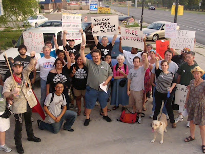 Supporters of Victor Agosto protest his Court Martial, East Gate of Fort Hood, 8 p.m., August 5, 2009. Photo by Michael Kern / The Rag Blog.