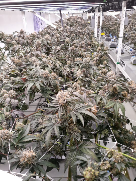 Buds close to harvest time at the MassGrow facility.