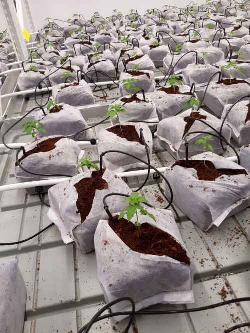 The plants are not grown in soil. There are no plastic flower pots such as the ones you’d see in a local greenhouse raising flower and vegetable plants for sale. The clones are placed in bundles of fabric filled with a sterile growth medium consisting of the ground-up fiber of coconut shells. Heat mats help promote root growth, while light-emitting diode (LED) lights help the rest of the plant. No pesticides or fungicides are used. Elaborate tanks and pumps filter town water to purify it and nutritional salts are added — all part of an automatic irrigation system. Fans provide ventilation, and workers wear masks in accordance with COVID-19 prevention policies. I noticed mild aroma both inside and outside the factory building, but nothing offensive. Equipment at MassGrow has cost about $500,000 so far, Kevin said.