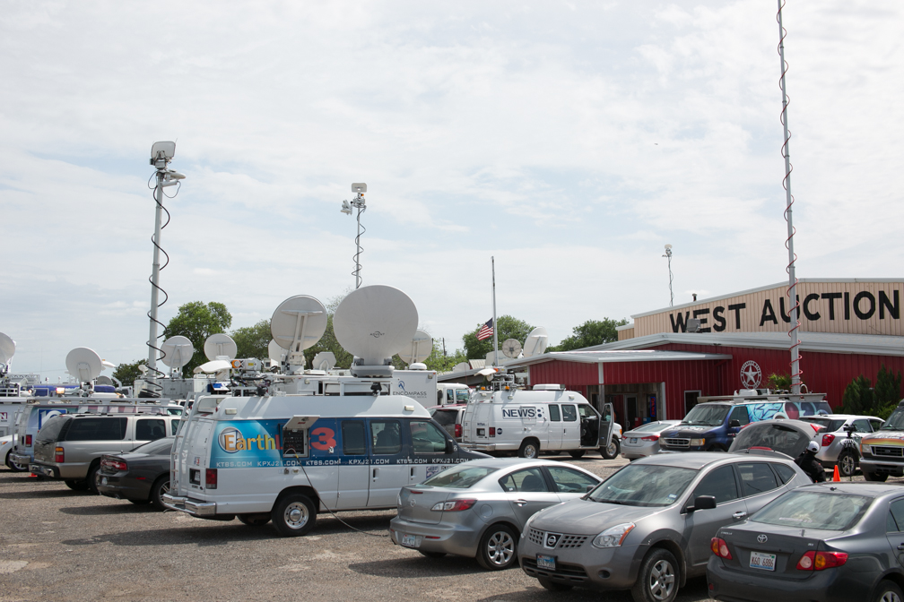Media gathered at the West Auction House, West, Texas, Thursday, April 18, 2013. Photo by Patrick Bresnan / The Rag Blog.