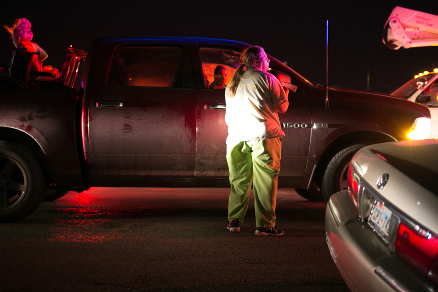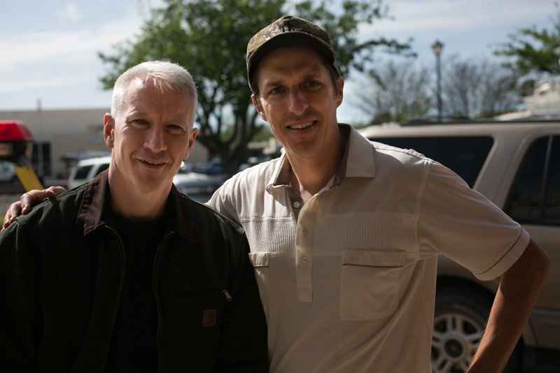 Wednesday morning was cold and rainy. By the time Patrick got back to the community center, most of the firefighters had left. Then a mass of new people descended on the town — roaming the streets, doing their makeup and practicing their lines out loud, “Live from West, Texas — a town that will never be the same. This small tightly-knit community,” over and over. Anderson Cooper popped up and Patrick succumbed like many others and took a photograph of himself with Cooper.