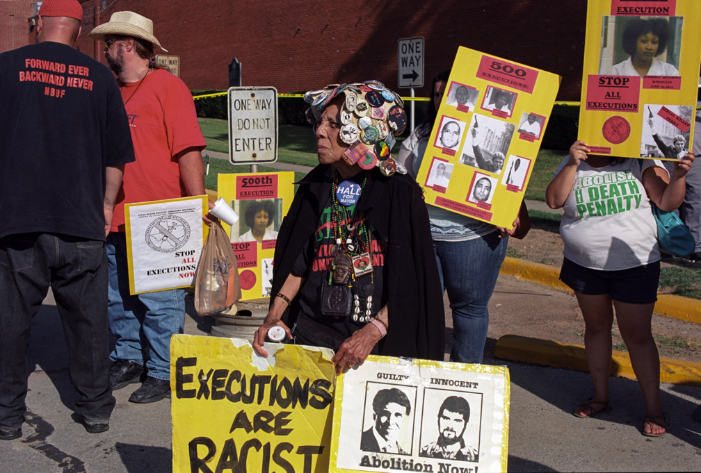 | Protesters outside the Huntsville Unit in Huntsville,Texas, Wednesday, June 26, where Kimberly McCarthy was the 500th person executed by the State of Texas. Photo by Otis Ike / The Rag Blog. |