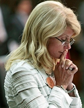 The third strike against the Wendy Davis’ filibuster took place at 10 p.m., filed by Donna Campbell (R-New Braunfels) who said that the sonogram bill had nothing to do with abortion. I was in the Senate Gallery. Campbell stood down below us, the sharpness of her features complemented by a thoroughly unpleasant expression. A man near me said, “And I always liked going to New Braunfels.”