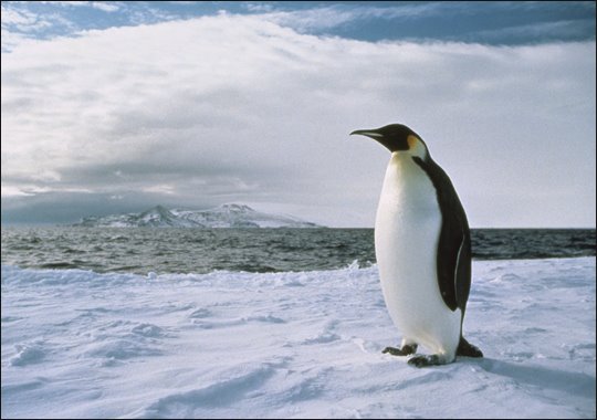 A king penguin at the edge of an ice shelf in Antarctica. Photo from Getty Images.