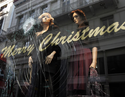 Shortly after the shooting, which took place before 10 p.m., an angry crowd – summoned by text message and the Internet – gathered in Exarchia. They clashed with police, shouting “Murderers in uniform,” and burned and looted local shops.
