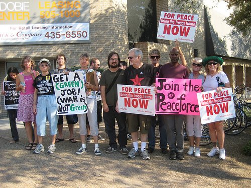 Demonstrators protesting the continuing occupation of Iraq gathered on Friday, September 19 at Dobie Mall adjacent to the campus of The University of Texas at Austin.