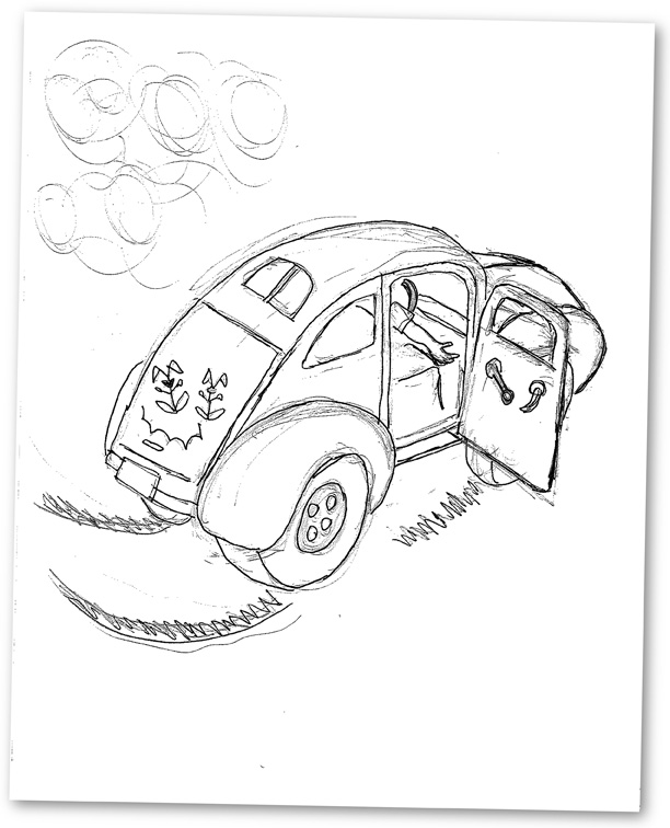 I ran flat out for the cul-de-sac, casting one eye toward the blur of gaping adults, hands all in the air with drinks and cigarettes. I passed them on a dead run toward the old green ’40 Ford with the jackrabbits painted on it sliding sideways across the pavement toward me. As he screeched the tires and skidded into a perfect 180 degree-controlled slide that lined us up for escape, his big old passenger door flew open.