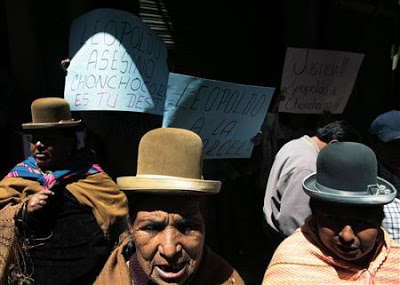 According to press reports and eye witness accounts, when the protesters arrived at a bridge seven kilometers outside the town of Porvenir, they were ambushed by assassins hired and trained by governor Fernández. Snipers in the tree tops shot down on the unarmed campesinos. Shirley Segovia, a Porvenir resident recalled to Bolpress, “We were killed like pigs, with machine guns, with rifles, with shotguns, with revolvers. The campesinos had only brought their teeth, clubs and sling shots, they didn’t bring rifles. After the first shots, some fled to the river Tahuamanu, but they were followed and shot at.” Others reported being tortured; days later the death toll rose to 30, with dozens wounded and over a hundred still missing. Roberto Tito, a farmer who was present at the conflict, said “This was a massacre of farmers, this is something that we should not allow.”