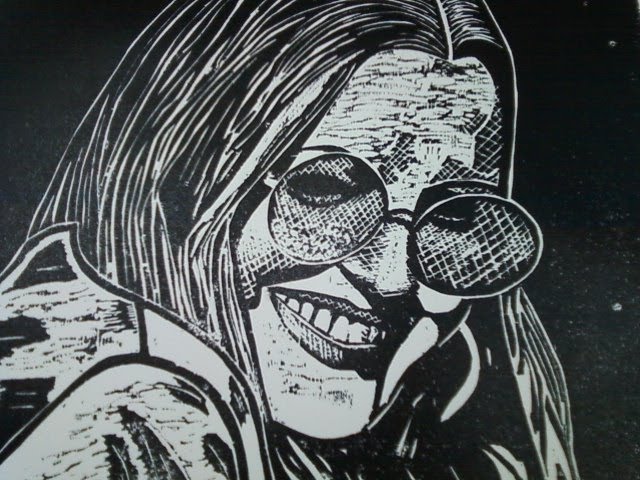 Inset art above: Hand-rubbed woodcut print of Marilyn Buck by Chicana artist Jane Madrigal, from her forthcoming collaborative project/exhibition: “Revolutionary Women Woodcuts.”