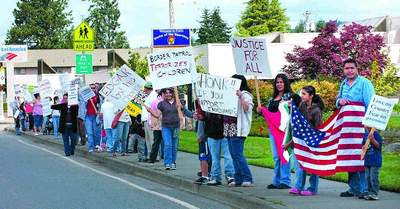 Tanya Ward, one of the organizers of Saturday’s protest, is a member of the Hoh tribe who told Peninsula Daily News that illegal immigrants are treated with the same unfairness she said is shown to Native Americans.