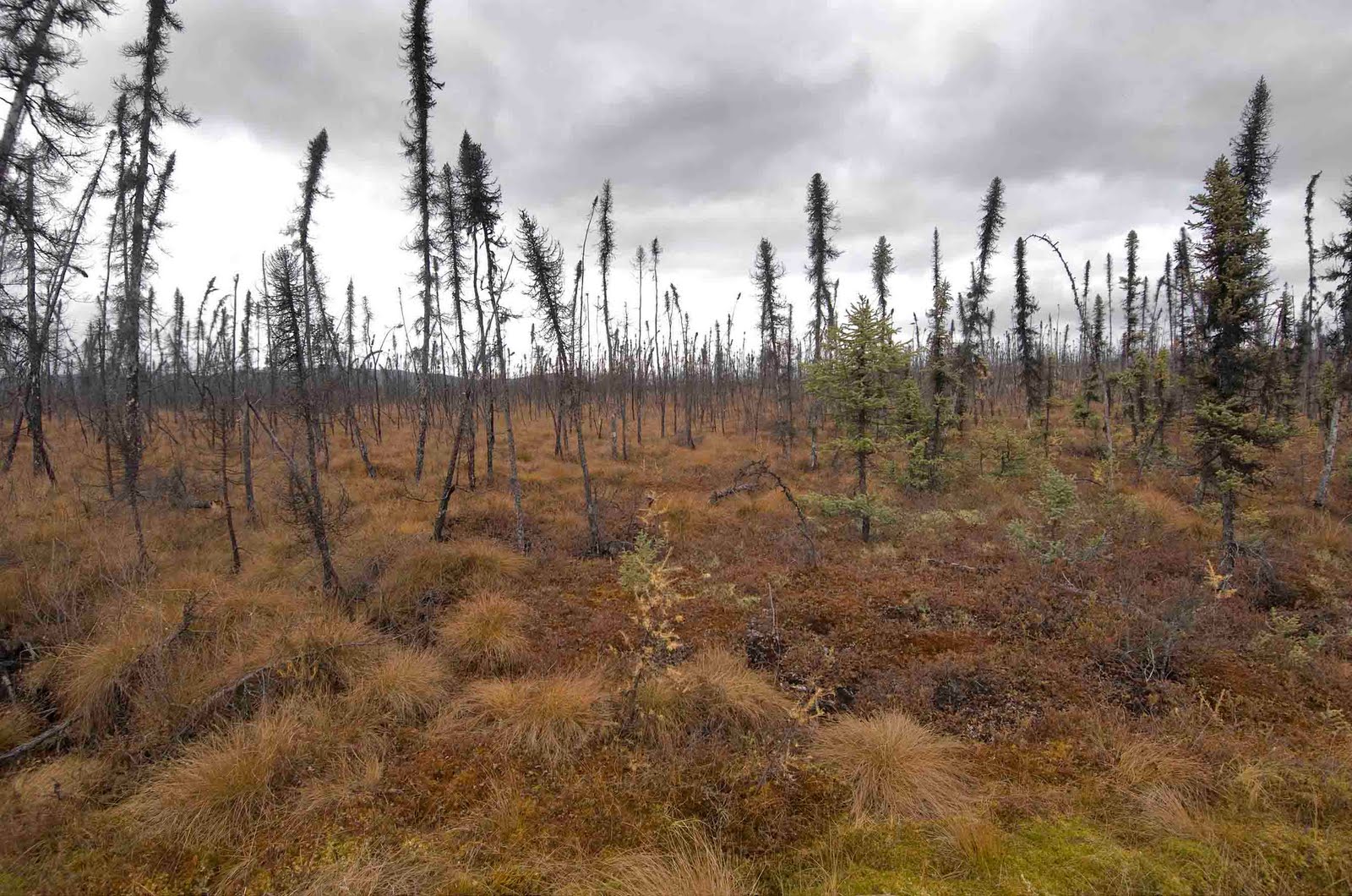 This investigation, carried out by the University of Guelph in Ontario, the U.S. Geologic Survey, U.S. Forest Service, and the University of Maryland, looked at the predominant boreal forest type in Alaska, made up mostly of black spruce. This type of forest is struggling on the edge of survival in the far north. It is generally sparse, short, ragged, twisted, leaning, and gnarly. To compound the drying because of a longer warm season caused by climate change, permafrost is melting. Its water drains away and leaves soils even dryer.