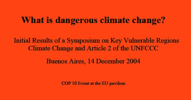 14) At the European Climate Forum… What is Dangerous Climate Change? Initial Results of a Symposium on Key Vulnerable Regions Climate change and Article 2 of the UNFCCC, Buenos Aires, December 14, 2004.