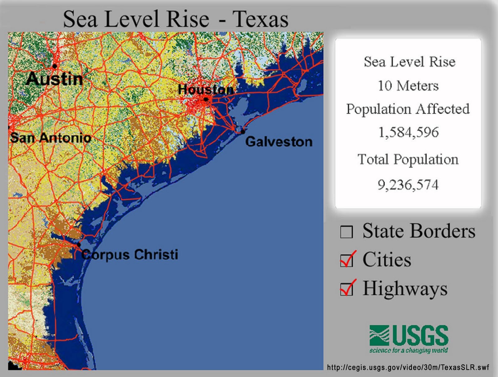 19) Ten meters of sea level rise would displace 78 million Americans… http://pubs.usgs.gov/fs/fs2-00/