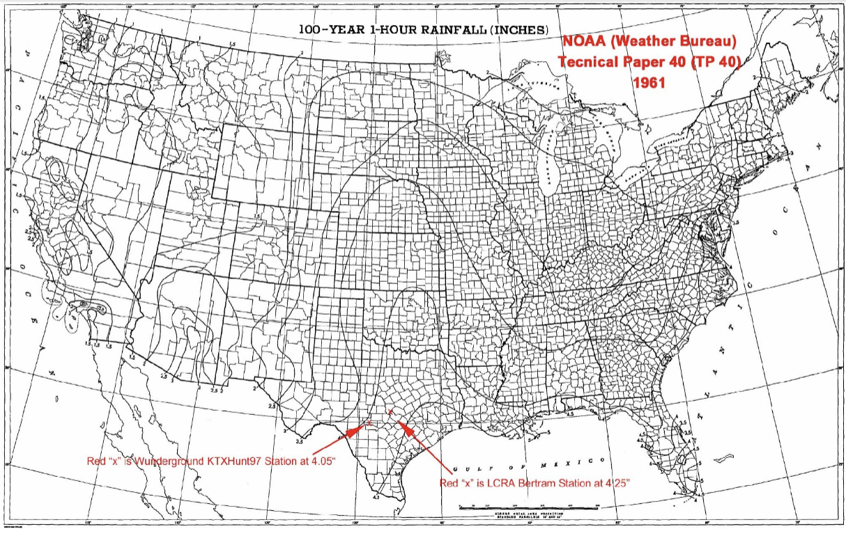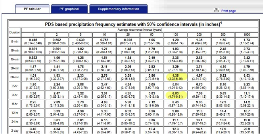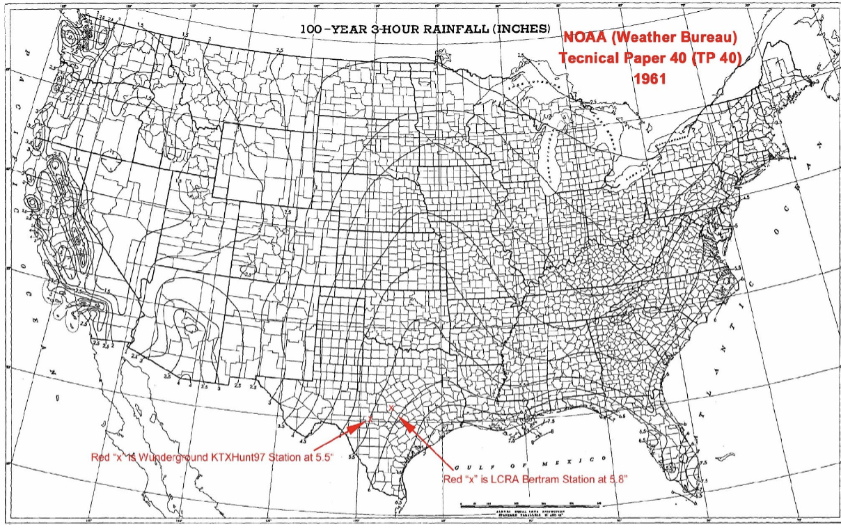 TP 40 (1961), Weather Bureau (NOAA) 5.83 inches is the 100-year, 3-hr storm