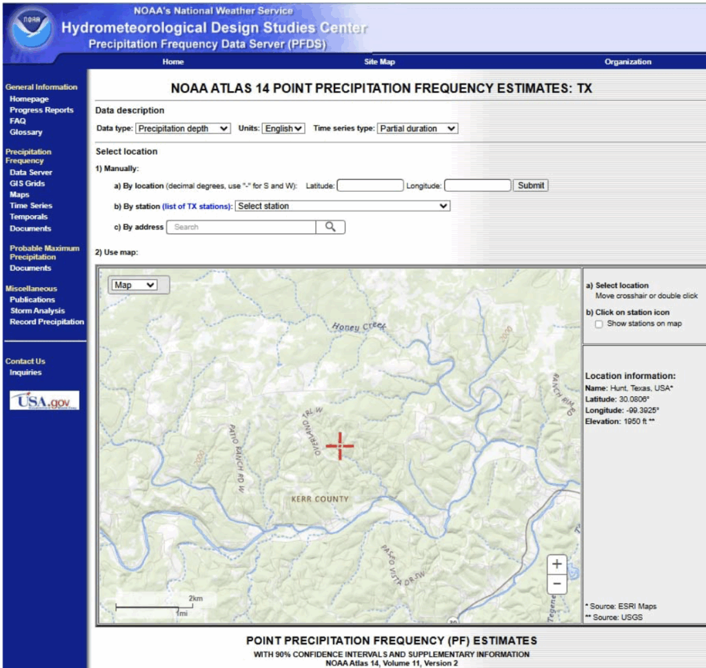 Atlas 14 (2018) for the KTXHunt97 gauge 100-year, 4-hr = 7 inches