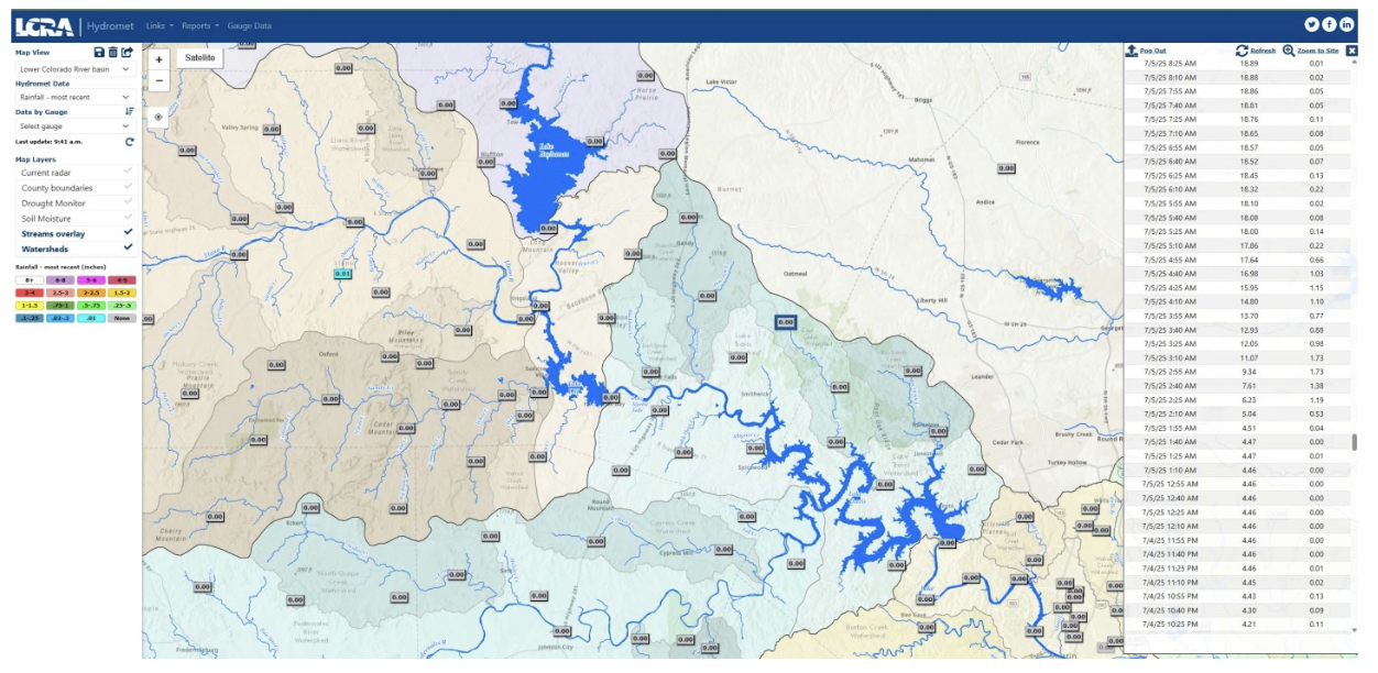 LCRA Hydromet, Bertram gauge, July 5, 2025 6 inches in 1 hour