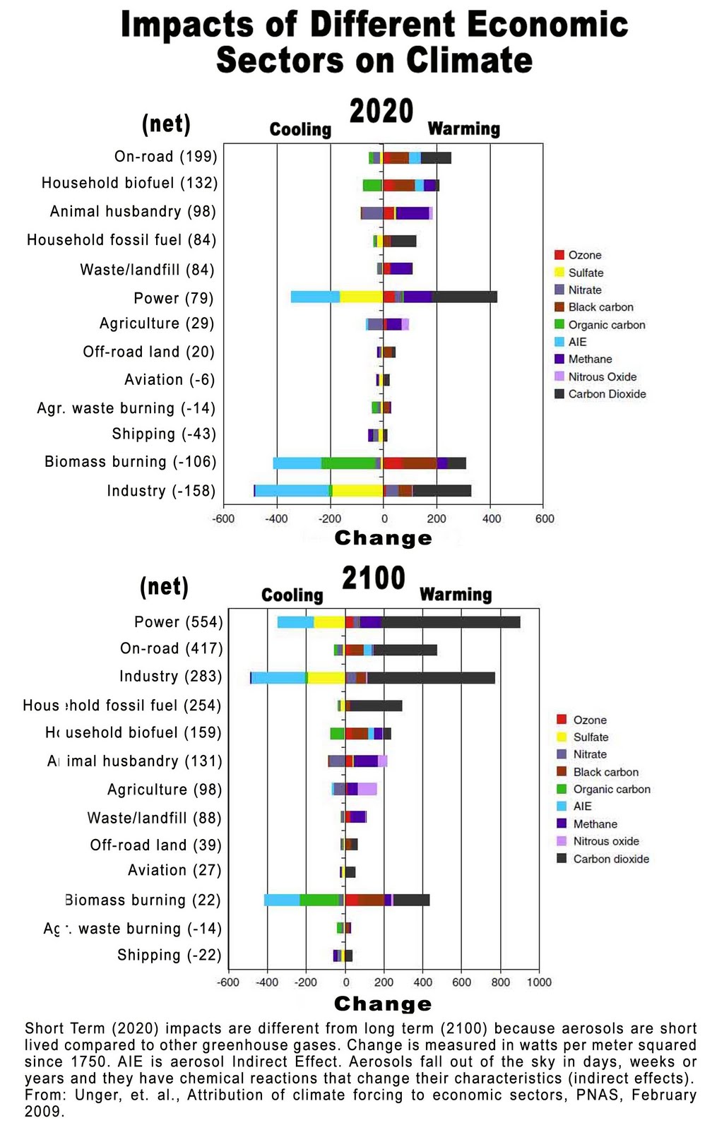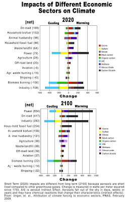 So our team of scientists following Dr, Unger considers how different economic sectors impact our climate based on the net impact from both warming and cooling pollutants created by those economic sectors.