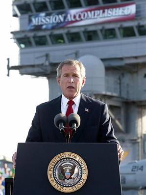 He can also, in good conscience, bring along that banner he once courageously blamed on sailors because this time, his mission really is accomplished.