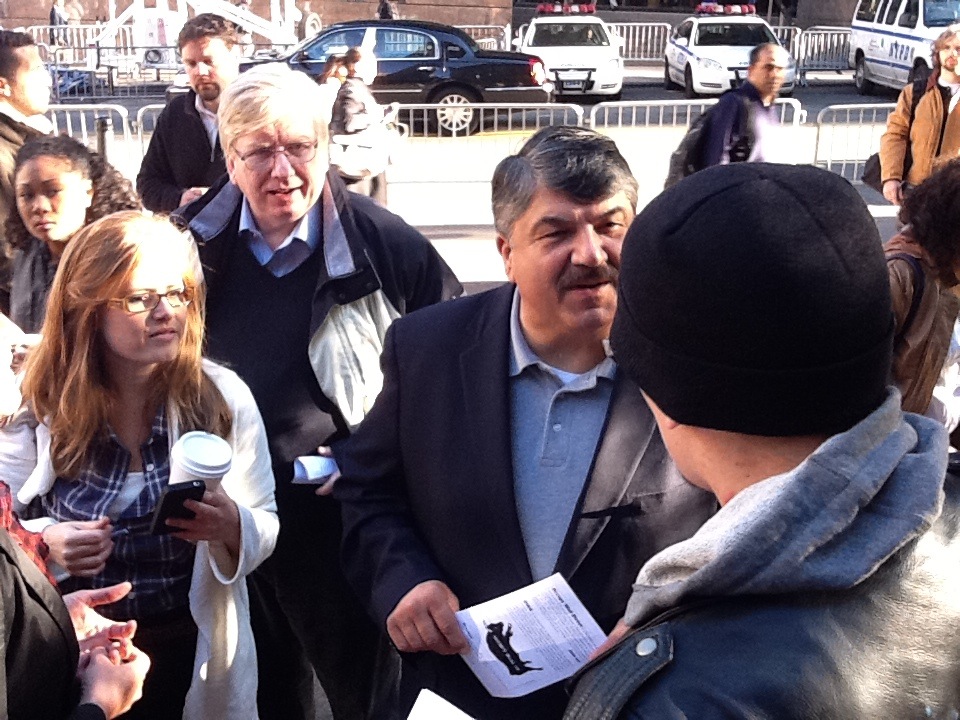 We stood on the wall for another hour or so, listening to a few speeches but mainly talking with friends and comrades who spotted us on our perch. Jay and Judith Schaffner, retired unionists, had driven in from the Poconos, and reported on what was happening even in the small towns of Northeastern Pennsylvania. Many activists with New York City’s Labor Left Project stopped by, as did people we knew from the Democratic Socialists of America and the Communist Party, USA.
