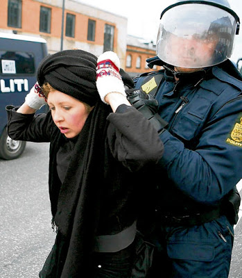 The new law may allow for mass preemptive arrests, but international treaties which Denmark has signed called the Geneva Conventions outline certain guidelines for the treatment of detainees which were clearly violated by the Danish police. People were handcuffed in uncomfortable positions for many hours on the frozen pavement, not allowed to move, not allowed to go to the toilet. Some fainted, many wet their pants, adding to the danger posed by the freezing temperatures.