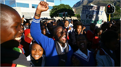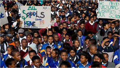 CAPE TOWN, South Africa — Thousands of children marched to City Hall this week in sensible black shoes, a stream of boys and girls from township schools across this seaside city that extended for blocks, passing in a blur of pleated skirts, blazers and rep ties. Their polite demand: Give us libraries and librarians.