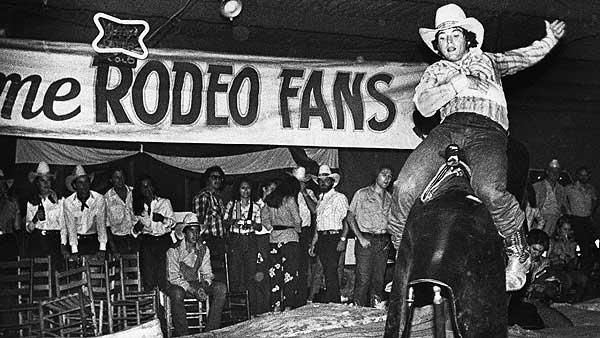 Gilley’s patron rides the mechanical bull on Dec. 17, 1980. AP photo / ABC13.com