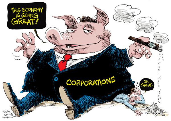 Conservatives may believe that the way to a healthier economy is to make rich people richer, but the American people aren’t buying it any more. They know from painful experience that money doesn’t “trickle down” in our capitalist economy — it flows upward. When workers are doing well everyone does well. That’s just the way it is.