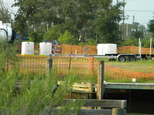 Other reports, of a very similar nature, have been reported about other BP staging areas along the Gulf of Mexico. The tanks are clearly used to store and transport Corexit dispersant. The Carolina Skiffs are clearly used to spray it atop oil.