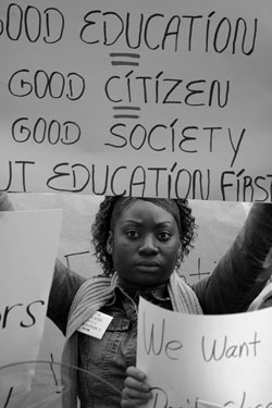 The most dramatic demonstrations were at the university level, but the crux of California’s education crisis lies in the K-12 public school system, especially in poor urban communities, and neighborhoods of immigrants and people of color. Some 22,000 pink slips were given out to public school teachers across the state in the 2009-10 academic year.