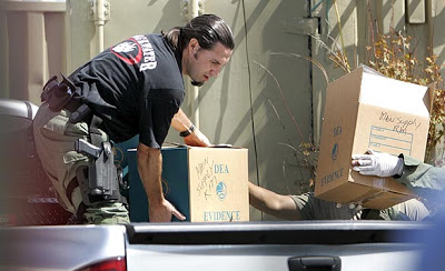 But this time was different. We’re used to the DEA calling in help from various federal agencies and local law enforcement. But I guess none of their usual buddies were available yesterday because from the picture below, which appeared in the LA Times today, it looks like they had to resort to calling in Blackwater: