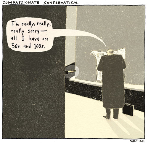 Former President Clinton summed it up well when he said that the message of compassionate conservatism was: “I want to help you. I really do. But you know, I just can’t.” All up, it comprised the basis for George Bush’s appeal to a religious, conservative and ignorant poor while simultaneously energizing the richest, strongest, best educated and most privileged members of society — politically a very potent and entirely fraudulent marriage of conceptual and social opposites.