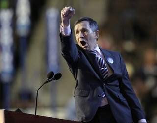 Rep. Dennis Kucinich, D-Ohio, preaches “Wake up, America!” to the Democratic National Convention in Denver on Tuesday, Aug. 26. Photo by Charlie Neibergall /AP