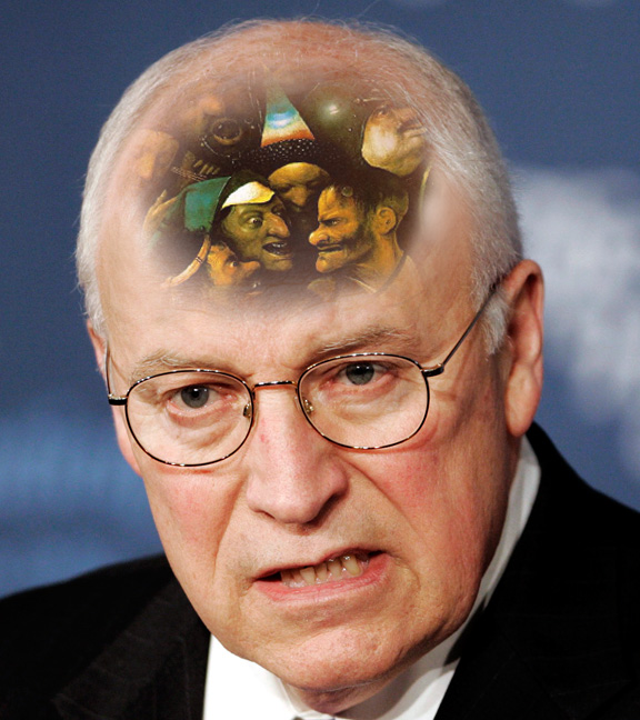 Dick Cheney is sadly childlike in his petulant public outbursts. There is a mad gleam in his eye as he insists that his fantasy world and imagined demons are real. He is both the raving old uncle bursting into the room, ranting wildly and an overindulged child throwing a tantrum, kicking and screaming on the floor.