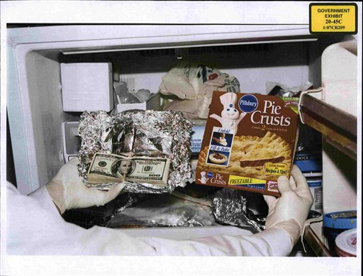 Government exhibit 20-45C. This photo was presented July 8, 2009, as court evidence in the trial of Rep. William Jefferson, D-La. It was provided by the U.S. Attorney’s office and shows an FBI agent holding contents seized on Aug. 3, 2005 from Jefferson’s freezer. Photo from U.S. Atty’s Office / AP.