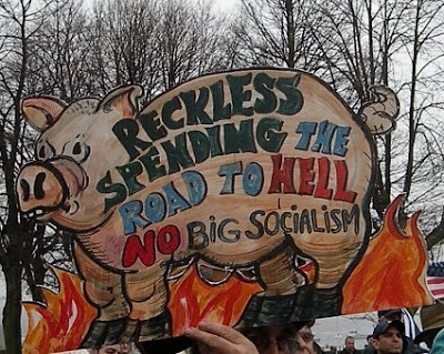 There were older folks, no doubt on Social Security and Medicare, carrying signs reading, ‘Send the Socialists to Europe.’ There were working folks, no doubt the beneficiaries of the Obama tax cuts and job programs, carrying signs saying, ‘No more taxes. No more spending.’