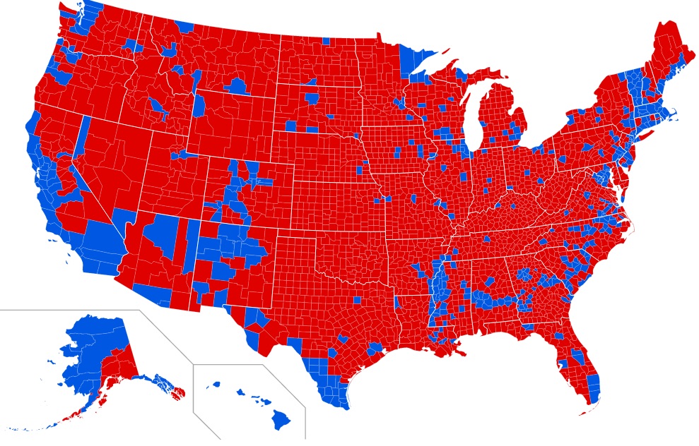 In Minnesota you can easily see the shrinking Democratic base. Obama lost 14 rural counties to Romney in 2012 that he carried in 2008. And then Clinton lost the other 19 rural counties that Obama carried in 2012.
