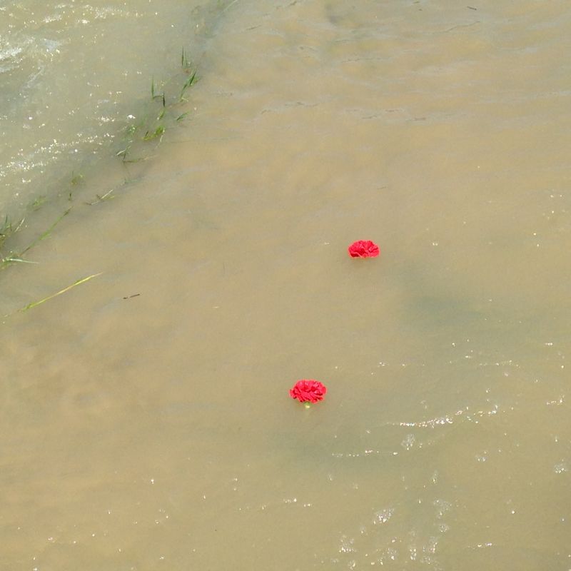 Josefina gently poured the ashes from the bag in the carved wooden box from Mexico. They went into a swiftly moving river and joined with the memories of those who had crossed the river and those who had never left it. People began to take flowers from the vase and throw them into the river. I chose a flower, pink like the shirts worn by our friends who struggle daily to survive the assault on their rights, their dignity, their very lives.